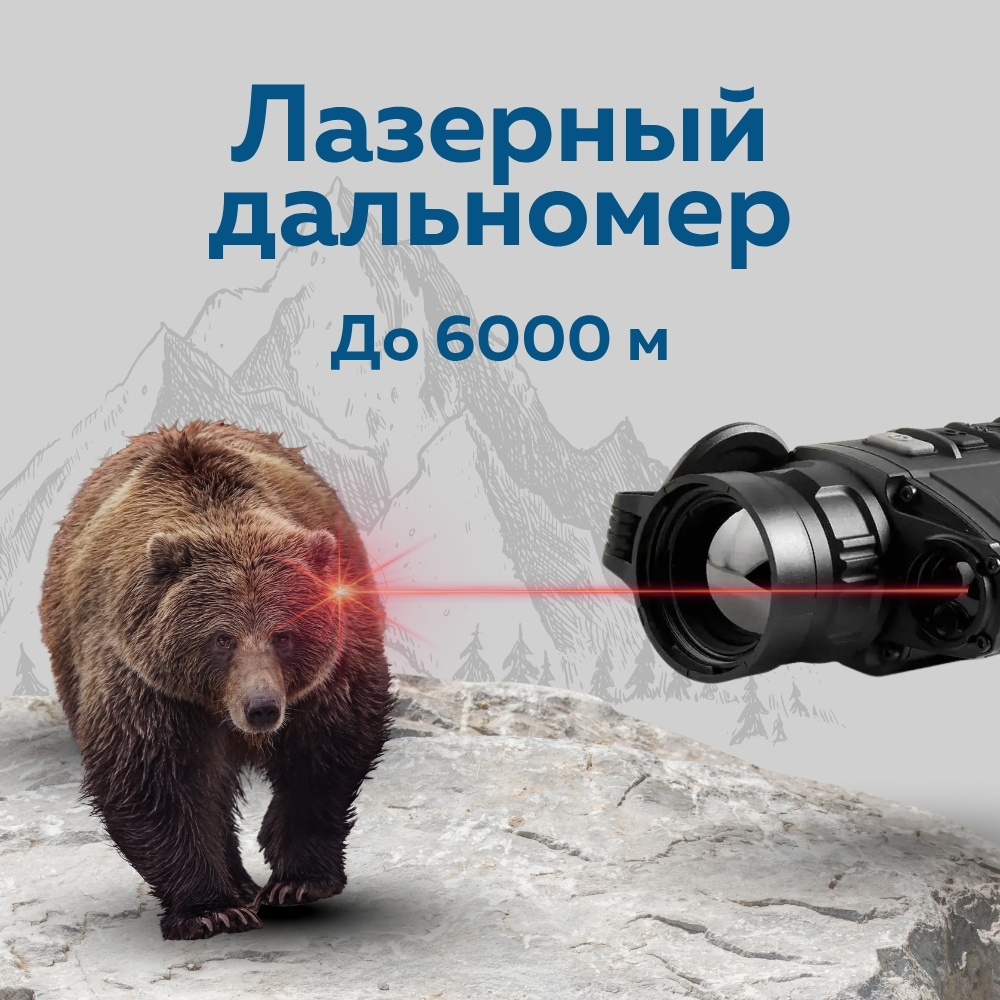 Прицел оснащён встроенным лазерным дальномером, который позволяет быстро и точно определить расстояние до цели, что особенно важно при стрельбе на большие дистанции.