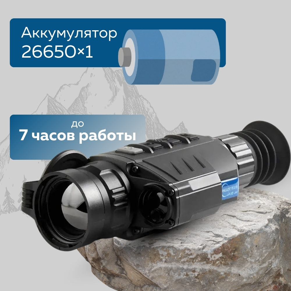 Прицел оснащён аккумулятором, обеспечивающим до 7 часов автономной работы.