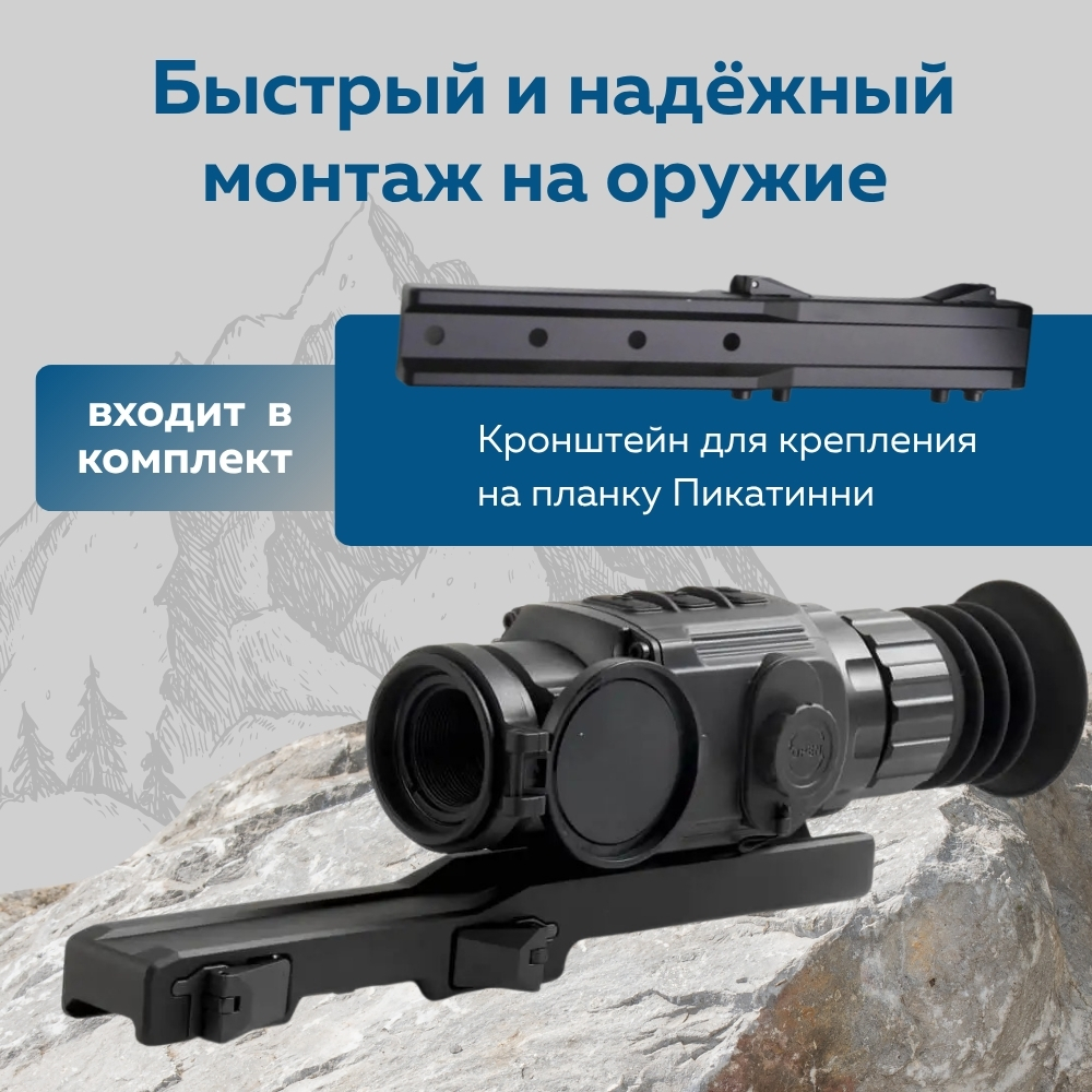 Совместим с планкой Picatinny, обеспечивая удобную и стабильную посадку прицела.