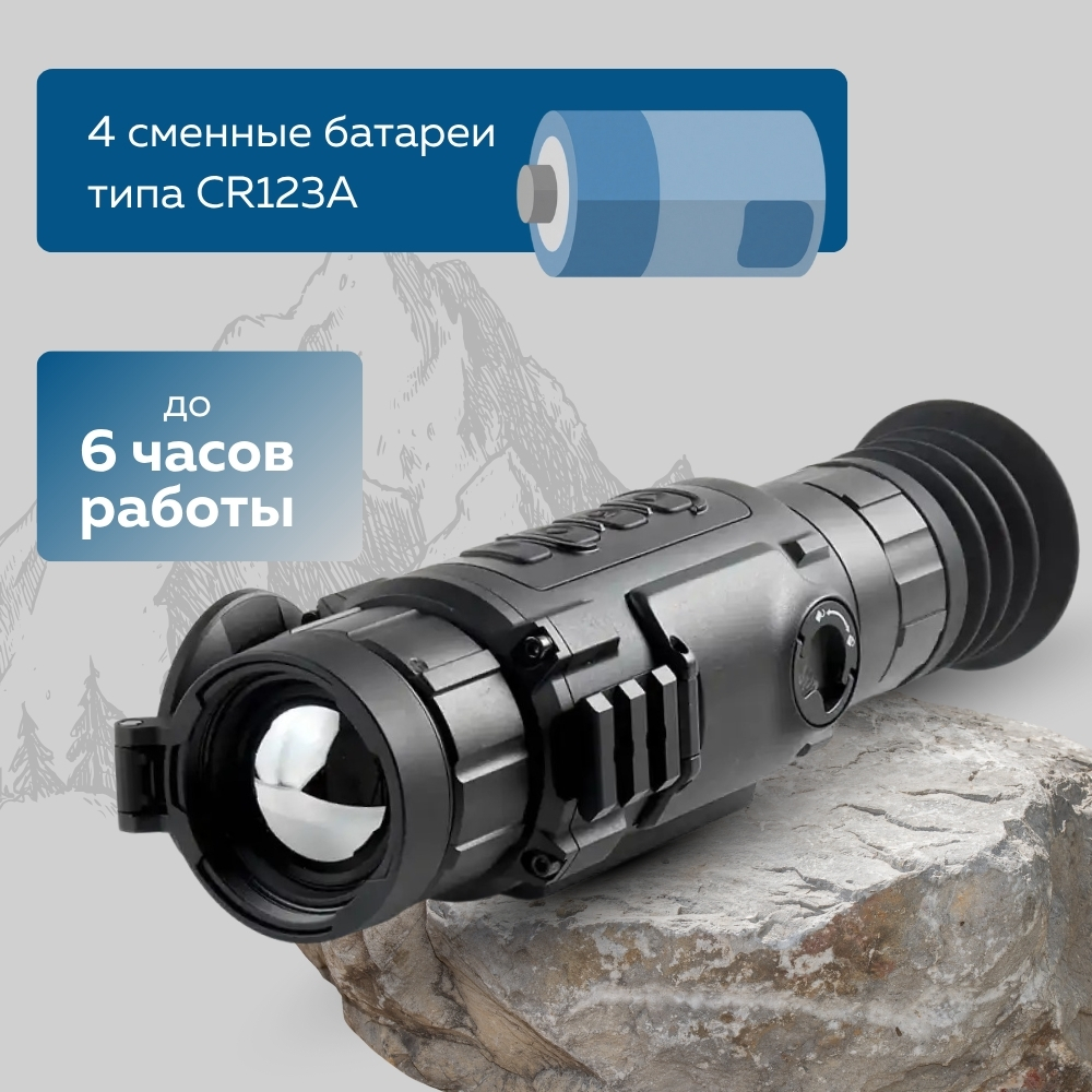 Прицел Longot LY 335 сочетает передовые оптические и электронные технологии, обеспечивая отличное качество изображения и надежную работу в любых условиях. Оснащён матрицей Vox разрешением 384×288 пикселей и чувствительностью <40 мК, он отлично подходит для охоты на ближних и средних дистанциях, даже при низком тепловом контрасте.