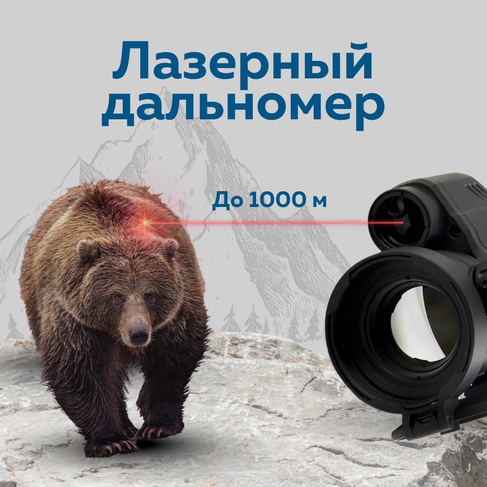 Встроенный лазерный дальномер с дальностью до 1000 метров позволяет точно и мгновенно определять расстояние до цели.