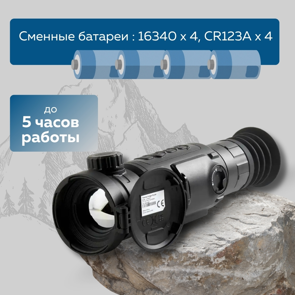 Прицел способен работать до 5 часов без подзарядки, что позволяет уверенно использовать его при длительных выходах и активном наблюдении в полевых условиях.