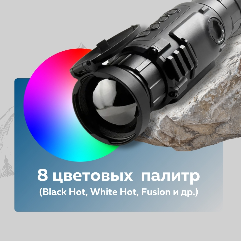В Longot LY 350 реализована поддержка 8 различных цветовых палитр. Это позволяет выбрать наиболее подходящий режим отображения изображения для любых условий окружающей среды и личных предпочтений пользователя — от классической “горячей белой” до контрастных и цветных вариантов.