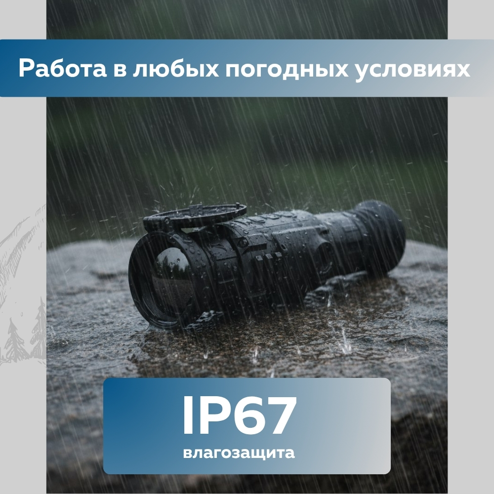 Корпус прицела выполнен по стандарту защиты IP67, что гарантирует надёжную работу устройства в суровых условиях: он защищён от пыли, влаги и временного погружения в воду. Прицел устойчив к интенсивной эксплуатации и экстремальным погодным явлениям.