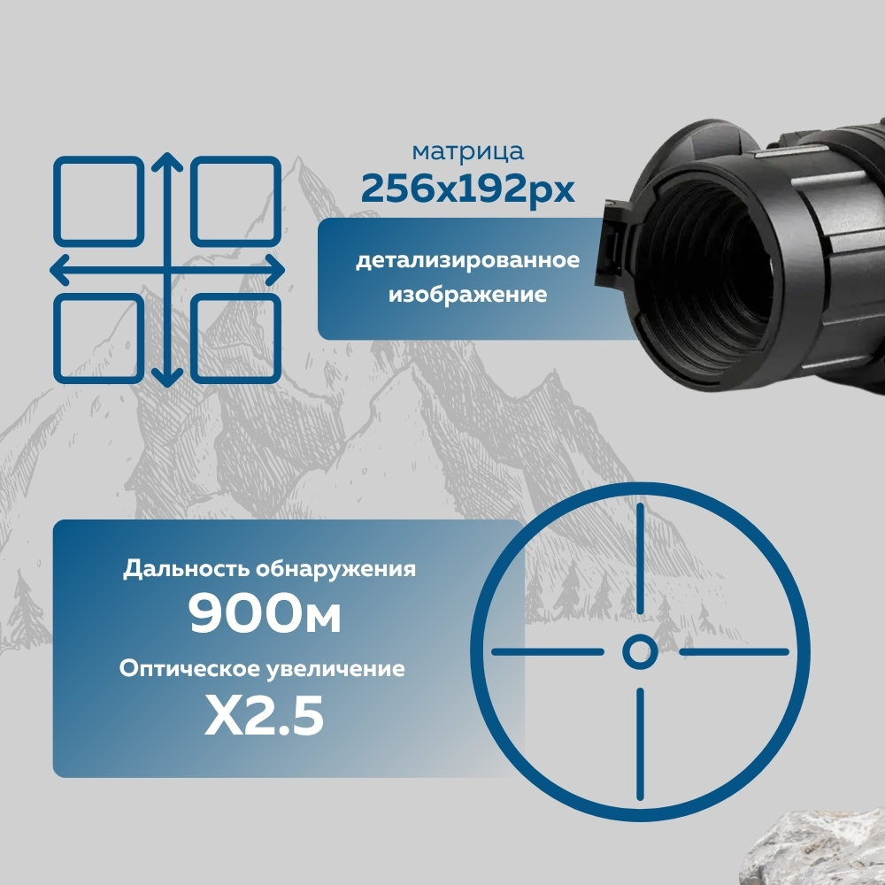 Благодаря матрице 256×192 пикселей изображение детализировано и позволит различать мелкие объекты даже на дальних дистанциях.