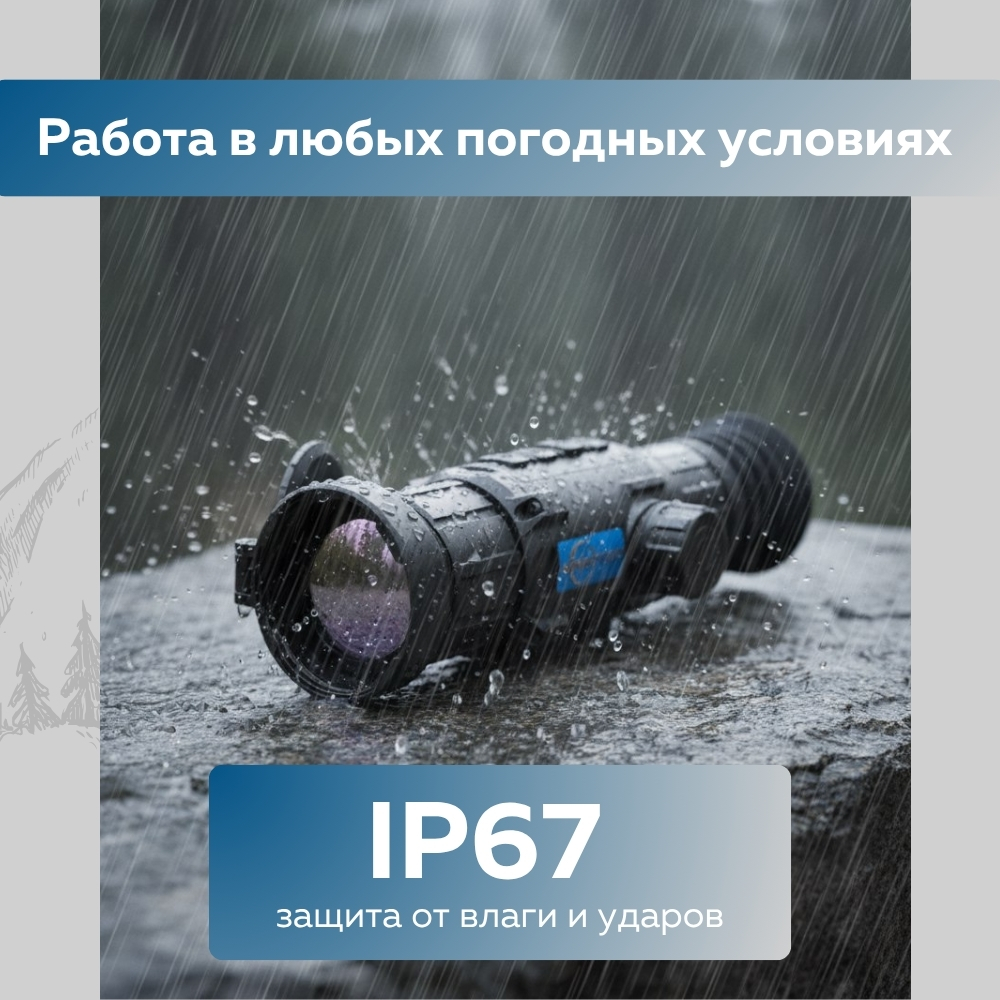 Корпус защищён по стандарту IP67 — прицел готов к работе в любых погодных условиях, устойчив к механическим воздействиям.