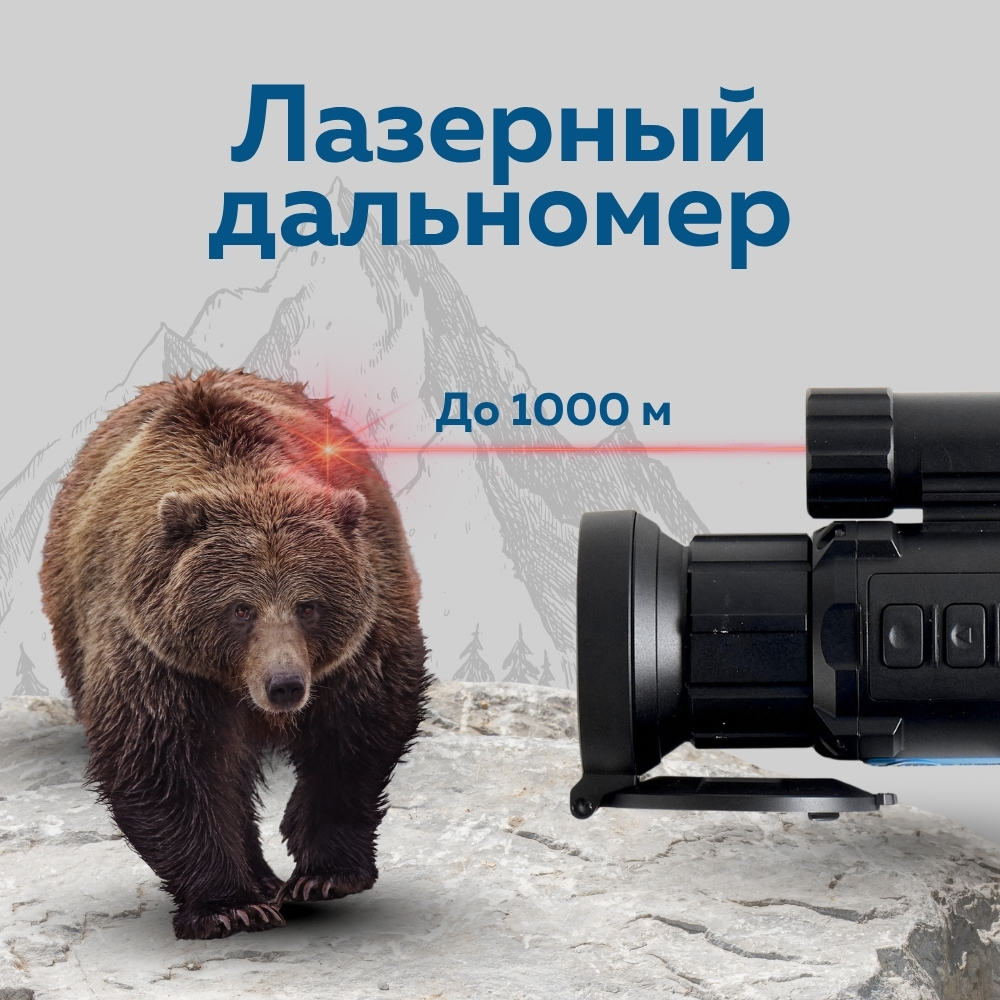 Прицел оснащён встроенным лазерным дальномером, который позволяет быстро и точно определить расстояние до цели, что особенно важно при стрельбе на большие дистанции.