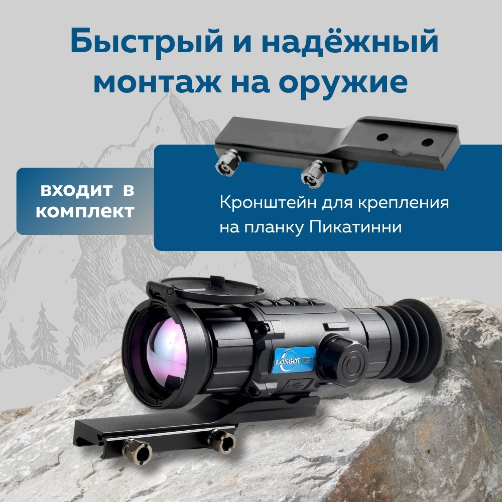 Longot R650 L – это современный тепловизионный прицел, разработанный специально для охотников, профессиональных стрелков и сотрудников охраны. Модель сочетает в себе передовые технологические решения, надежность и удобство эксплуатации. Прицел успешно справляется с задачами в сложных погодных условиях и выдерживает отдачу крупных калибров.
