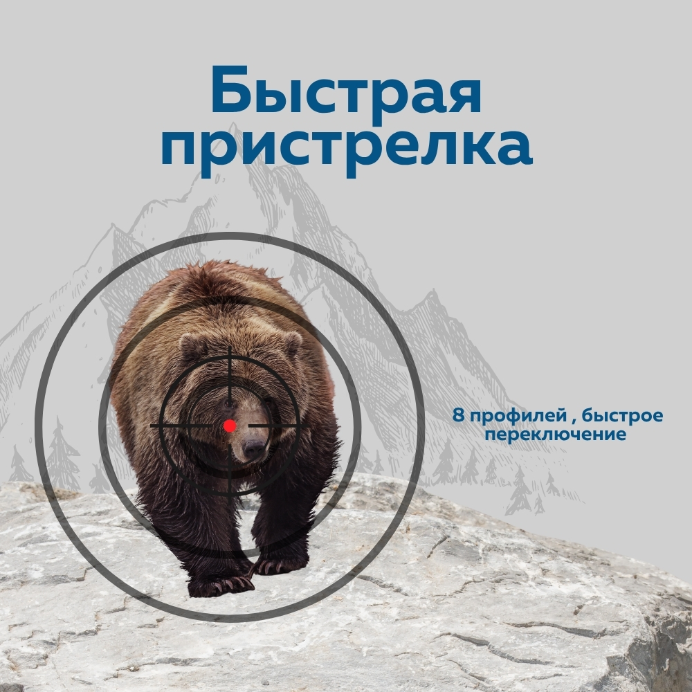 Прибор поддерживает 8 пользовательских профилей пристрелки, что обеспечивает удобное и быстрое переключение настроек.