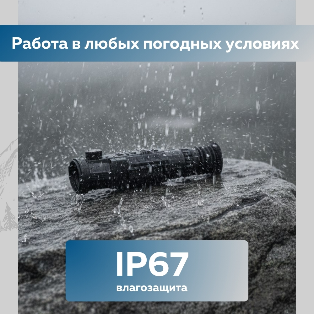 Это гарантирует надёжную работу прицела в условиях дождя, снега, запылённости и даже при кратковременном погружении в воду.