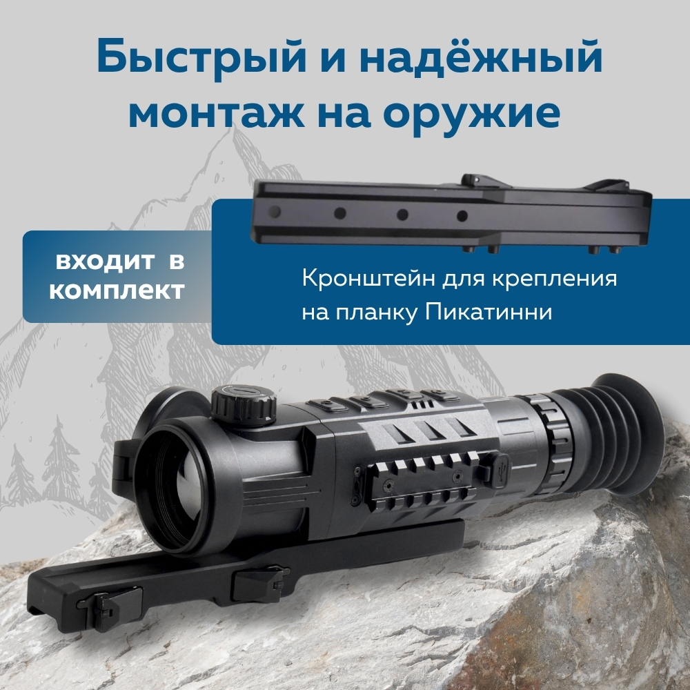 Благодаря объективу с фокусным расстоянием 50 мм прибор способен обнаруживать человека на расстоянии до 2600 метров и обеспечивает оптическое увеличение 3× с возможностью цифрового увеличения (максимум — 11,2×). Многоступенчатый цифровой зум позволяет гибко выбирать нужный масштаб наблюдения.
